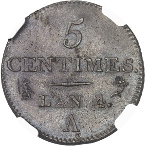 FRANCE - FRANCE Directoire (1795-1799). Cinq centimes Dupré, petit module An 4 (1795), A, Paris.…