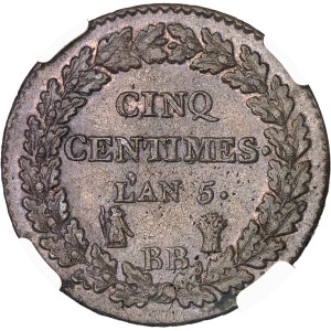 FRANCE - FRANCE Directoire (1795-1799). Cinq centimes Dupré, grand module An 5 (1796), BB, Strasbourg.…