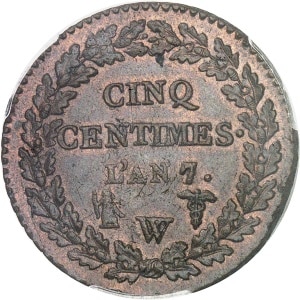 FRANCE - FRANCE Directoire (1795-1799). Cinq centimes Dupré, grand module An 7/5 (1798), W, Lille.…