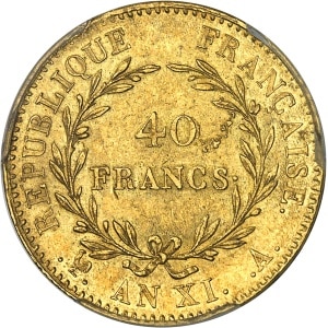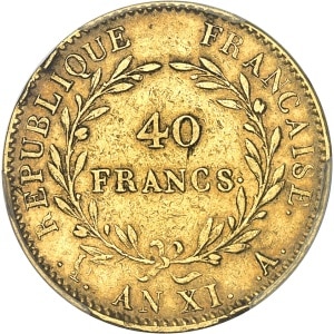FRANCE - FRANCE Consulat (1799-1804). 40 francs Bonaparte, Premier Consul An XI (1803), A, Paris.…