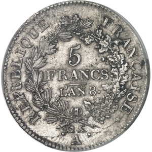 FRANCE - FRANCE Consulat (1799-1804). 5 francs Union et Force An 8 (1800), A, Paris.…
