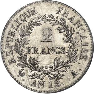 FRANCE - FRANCE Consulat (1799-1804). 2 francs Bonaparte An 12 (1803), A, Paris.