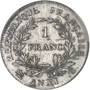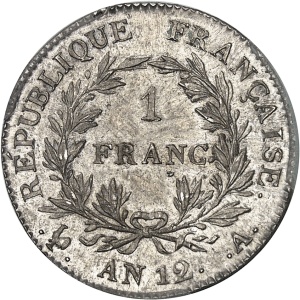 FRANCE - FRANCE Premier Empire / Napoléon Ier (1804-1814). 1 franc calendrier révolutionnaire An 12 (1804), I,…