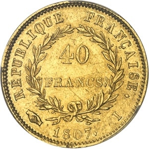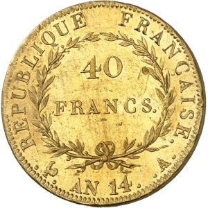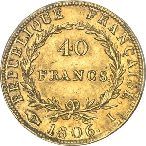 FRANCE - FRANCE Premier Empire / Napoléon Ier (1804-1814). 40 francs tête nue, calendrier grégorien 1806, I, L…