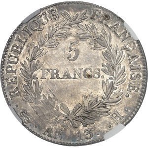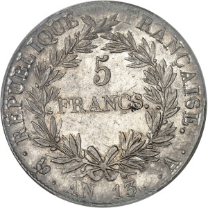 FRANCE - FRANCE Premier Empire / Napoléon Ier (1804-1814). 5 francs tête nue, calendrier révolutionnaire An 13…