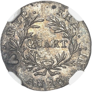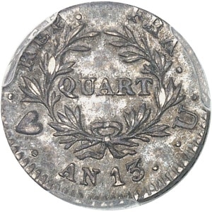 FRANCE - FRANCE Premier Empire / Napoléon Ier (1804-1814). Quart de franc calendrier révolutionnaire An 13 (18…