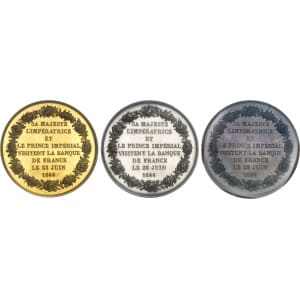 FRANCE - FRANCE Second Empire / Napoléon III (1852-1870). Coffret de 3 médailles, Or, argent et cuivre, Visite…