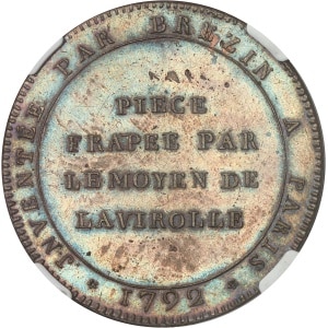 FRANCE - FRANCE Convention (1792-1795). Essai au module de 2 sols au caducée par Brézin 1792 - An I, Paris.…