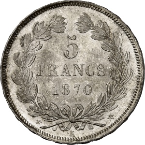 FRANCE - FRANCE Gouvernement de Défense Nationale (1870-1871). 5 francs Cérès sans légende 1870, K, Bordeaux.…