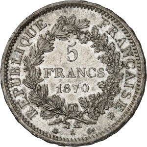 FRANCE - FRANCE Gouvernement de Défense Nationale (1870-1871). 5 francs Hercule 1870, A, Paris.…