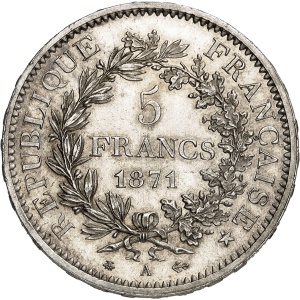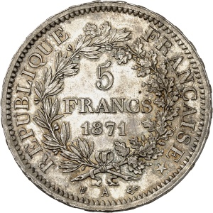 FRANCE - FRANCE Gouvernement de Défense Nationale (1870-1871). 5 francs Hercule 1871, A, Paris.…