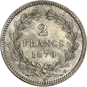 FRANCE - FRANCE Gouvernement de Défense Nationale (1870-1871). 2 francs Cérès, sans légende 1870, K, Bordeaux.…