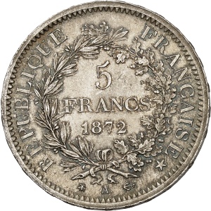 FRANCE - FRANCE IIIe République (1870-1940). 5 francs Hercule 1872, A, Paris.