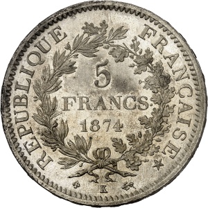 FRANCE - FRANCE IIIe République (1870-1940). 5 francs Hercule 1874, K, Bordeaux.…
