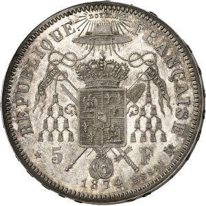 FRANCE - FRANCE Gouvernement de Défense Nationale (1870-1871). Module de 5 francs Gambetta, tranche lisse, Fra…