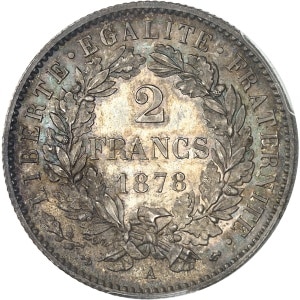FRANCE - FRANCE IIIe République (1870-1940). 2 francs Cérès, Flan bruni (PROOF) 1878, A, Paris.…