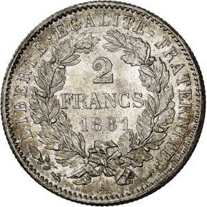 FRANCE - FRANCE IIIe République (1870-1940). 2 francs Cérès avec légende 1881, A, Paris.…