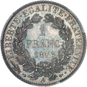FRANCE - FRANCE IIIe République (1870-1940). 1 franc Cérès, Flan bruni (PROOF) 1878, A, Paris.…