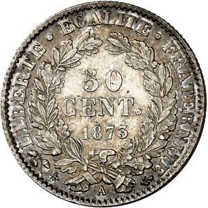 FRANCE - FRANCE IIIe République (1870-1940). 50 centimes Cérès 1873, A, Paris.…
