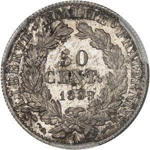 FRANCE - FRANCE IIIe République (1870-1940). 50 centimes Cérès, Flan bruni (PROOF) 1889, A, Paris.…