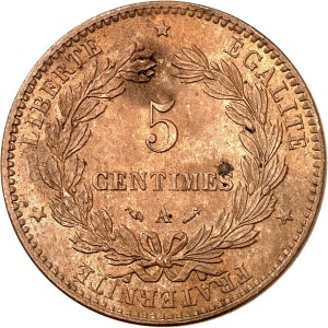 FRANCE - FRANCE IIIe République (1870-1940). 5 centimes Cérès 1881, A, Paris.