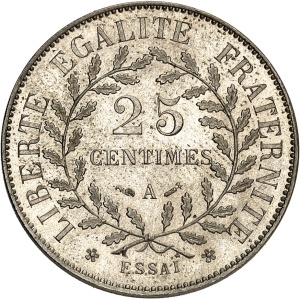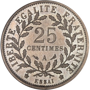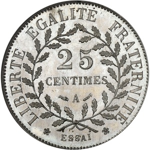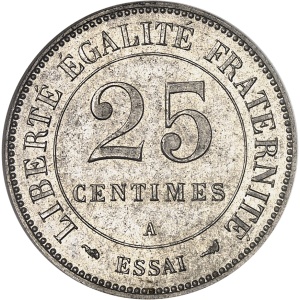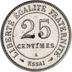 FRANCE - FRANCE IIIe République (1870-1940). Essai petit module de 25 centimes en maillechort d’après Dupré 19…