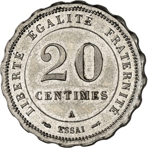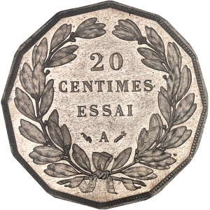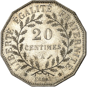FRANCE - FRANCE IIIe République (1870-1940). Essai dodécagonal de 20 centimes en maillechort d’après Dupré, Fr…