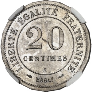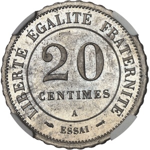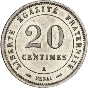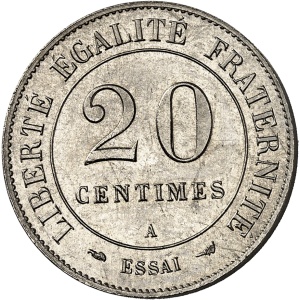FRANCE - FRANCE IIIe République (1870-1940). Essai de 20 centimes en maillechort, d’après Lorthior, flan dodéc…