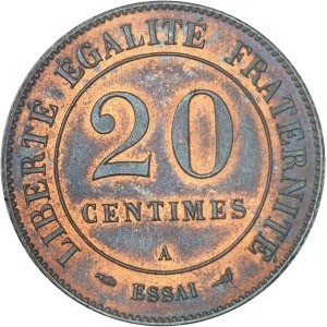 FRANCE - FRANCE IIIe République (1870-1940). Essai de 20 centimes Merley, 2e type, sans faisceau ni rameau, fl…