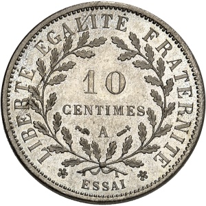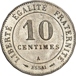 FRANCE - FRANCE IIIe République (1870-1940). Essai de 10 centimes Merley, 1er type, flan rond, Frappe spéciale…