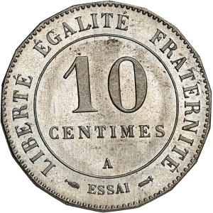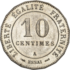 FRANCE - FRANCE IIIe République (1870-1940). Essai de 10 centimes Merley, 2e type, grand module, flan polygona…