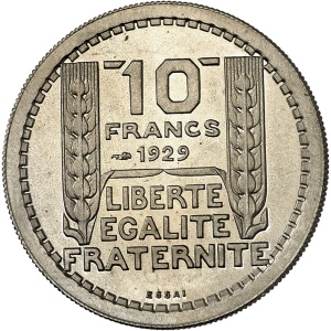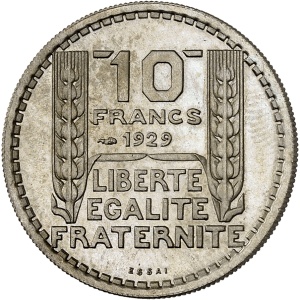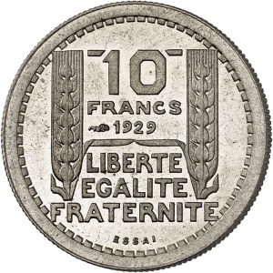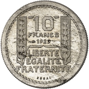 FRANCE - FRANCE IIIe République (1870-1940). Essai de 10 francs Turin hybride 30 mm et poids 9 g, Frappe spéci…