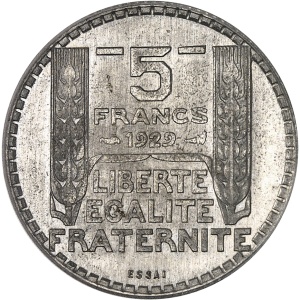 FRANCE - FRANCE IIIe République (1870-1940). Essai de 5 francs Turin en cupro-aluminium, Frappe spéciale (SP) …