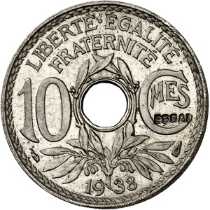 FRANCE - FRANCE IIIe République (1870-1940). Essai de 10 centimes, par Lindauer, avec ESSAI en creux, en bronz…