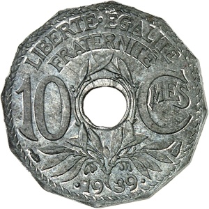 FRANCE - FRANCE IIIe République (1870-1940). Essai de 10 centimes Lindauer, dodécagonal, date avec points, en …
