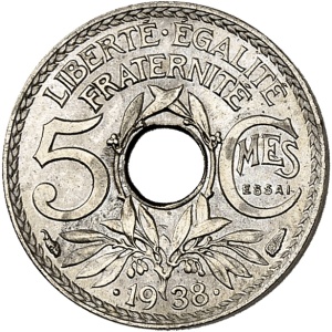 FRANCE - FRANCE IIIe République (1870-1940). Essai de 5 centimes, par Lindauer, avec ESSAI en relief, en bronz…
