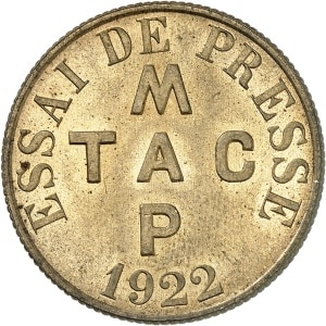 FRANCE - FRANCE IIIe République (1870-1940). Essai de presse pour jetons-monnaies, au module de 1 franc, TAG M…