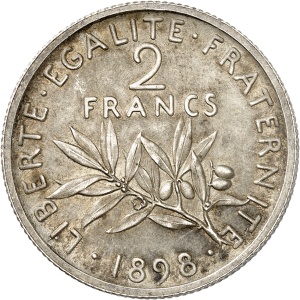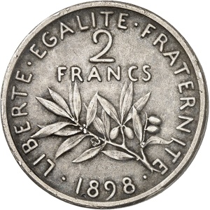 FRANCE - FRANCE IIIe République (1870-1940). Essai de 2 francs Semeuse, grand 2, Frappe spéciale (SP) 1898, Pa…