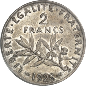 FRANCE - FRANCE IIIe République (1870-1940). Piéfort de 2 francs Semeuse, Frappe spéciale (SP) 1928, Paris.…