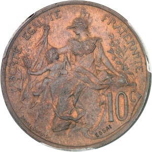 FRANCE - FRANCE IIIe République (1870-1940). Essai de 10 centimes Daniel-Dupuis, non daté avec ESSAI en creux,…