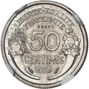 FRANCE - FRANCE IIIe République (1870-1940). Essai de 50 centimes Morlon en nickel 1939, Paris.…