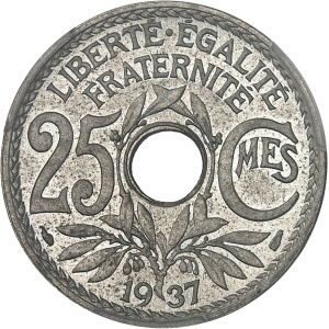 FRANCE - FRANCE IIIe République (1870-1940). Essai de frappe de 25 centimes Lindauer en nickel, non perforé, l…