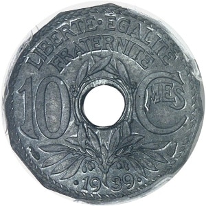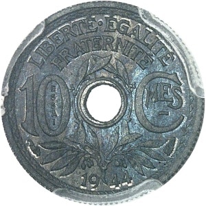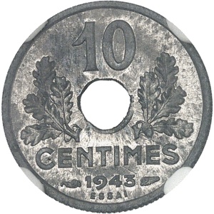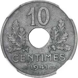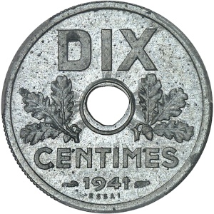 FRANCE - FRANCE État Français (1940-1944). Essai de 10 centimes État français, petit module, type définitif 19…