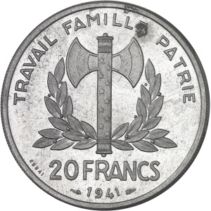 FRANCE - FRANCE État Français (1940-1944). Essai-piéfort de 20 francs Pétain en aluminium par Lavrillier, Frap…