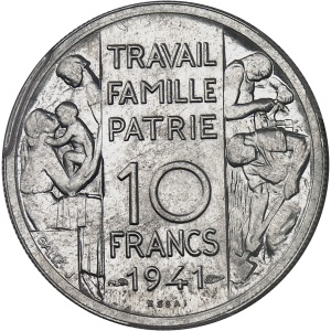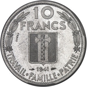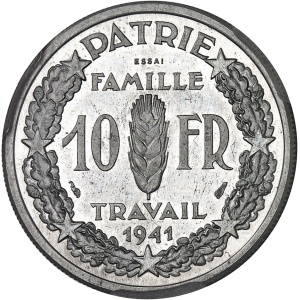 FRANCE - FRANCE État Français (1940-1944). Essai de 10 francs Pétain en aluminium par Galle, Frappe spéciale (…