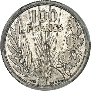 FRANCE - FRANCE État Français (1940-1944). Essai de frappe de 5 francs Pétain, au module de 100 francs Bazor, …