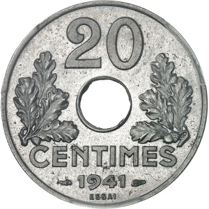 FRANCE - FRANCE État Français (1940-1944). Épreuve de 20 centimes en alliage composite (palladium, cadmium, et…