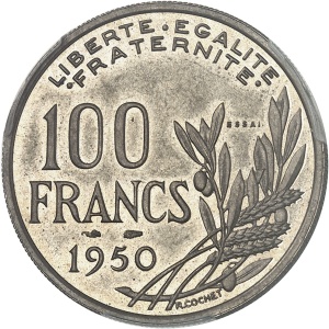 FRANCE - FRANCE IVe République (1947-1958). Essai de 100 francs, concours de 100 francs 1950, par Bazor, Frapp…