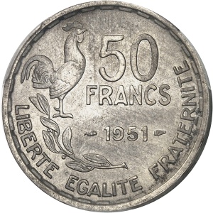 FRANCE - FRANCE IVe République (1947-1958). Épreuve de 50 francs Guiraud en argent, sans le mot ESSAI, Frappe …