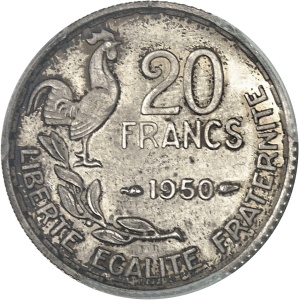 FRANCE - FRANCE IVe République (1947-1958). Épreuve de 20 francs Georges Guiraud en argent, avec trois plumes,…